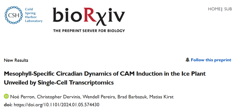 ② 該研究通過單核RNA測序(snRNA-seq),結(jié)合一個全新高質(zhì)量組裝和注釋的基因組,對冰草從C3到CAM的環(huán)境誘導(dǎo)轉(zhuǎn)變進(jìn)行了表征,以識別其潛在的調(diào)控因子。針對在黎明和黃昏采集的冰草葉片在C3和CAM切換過程中單核RNA測序數(shù)據(jù)的分析,揭示了在CAM誘導(dǎo)初期葉肉細(xì)胞中存在顯著的轉(zhuǎn)錄變化。