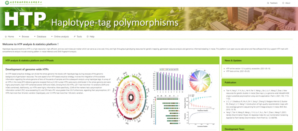 ☆?利用玉米單倍型標(biāo)簽多態(tài)性分析工具:HTP數(shù)據(jù)庫(HTPdb):該數(shù)據(jù)庫覆蓋了育種中常用的3,587個(gè)重要玉米自交系,其中包括172,921個(gè)非冗余的HTP等位基因變異,提供了豐富的單倍型標(biāo)簽資源。同時(shí),基于HTP標(biāo)記的特點(diǎn),研究人員在HTPTools中集成了智能區(qū)塊數(shù)據(jù)填充算法,當(dāng)僅需獲取少量HTP標(biāo)記的基因型時(shí),可以通過該功能快速地獲取對(duì)應(yīng)區(qū)塊的完整數(shù)據(jù)。