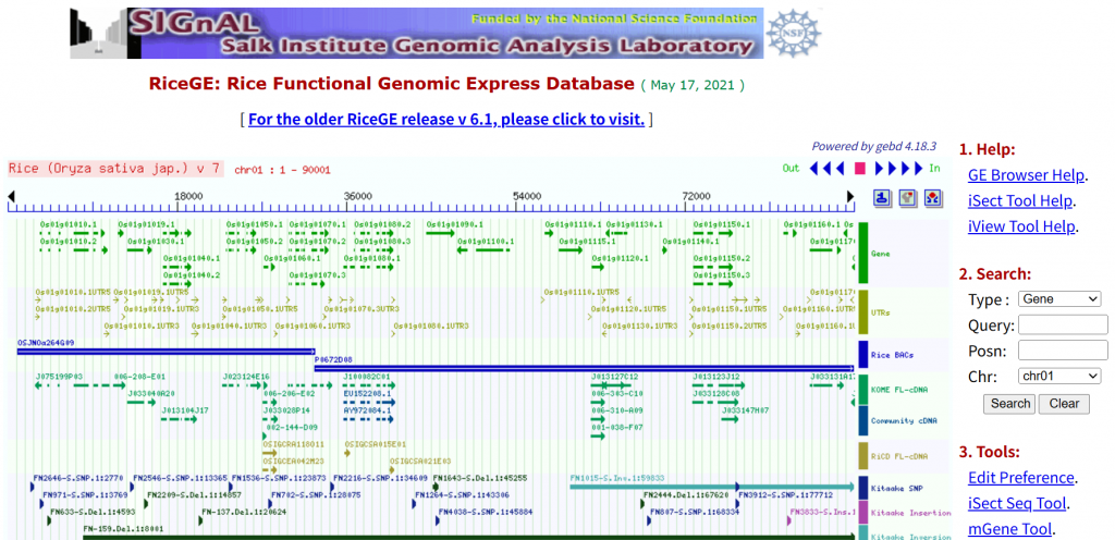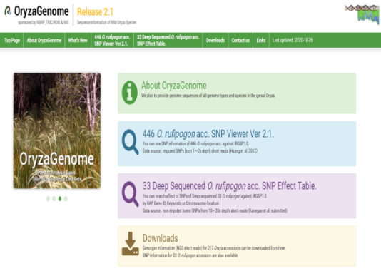 ☆?Oryzabase是一個(gè)綜合性水稻科學(xué)數(shù)據(jù)庫,包含大量水稻品系庫存信息,突變體信息,染色體圖譜,基因字典,水稻科學(xué)基礎(chǔ)知識(shí)。OryzaGenome是野生Oryza物種的基因組數(shù)據(jù)庫,為水稻研究提供了比較和進(jìn)化的組學(xué)方法。