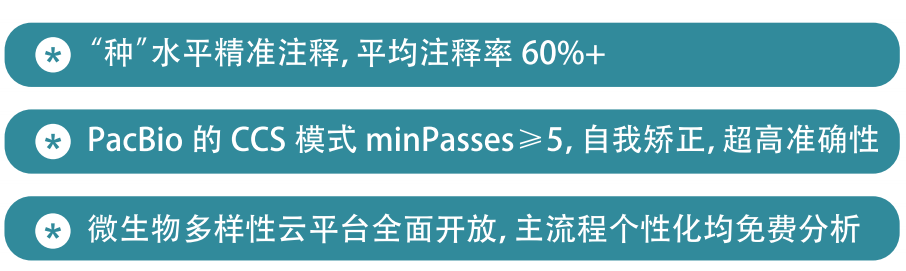 基于PacBio SMRT單分子實(shí)時(shí)測(cè)序技術(shù)可以對(duì)DNA序列實(shí)現(xiàn)單分子級(jí)別的超長(zhǎng)讀長(zhǎng)測(cè)序,能夠輕易實(shí)現(xiàn)對(duì)環(huán)境樣品中rDNA/ITS/功能基因進(jìn)行全長(zhǎng)測(cè)序,不受制于短序列的局限性,提供了種甚至菌株水平的物種分辨率,更全面的解釋物種的多樣性。